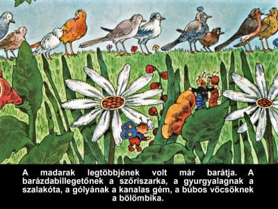 A feketerigó nagyon elégedetlen külsejével. Miközben minden erejét arra fecsérli, hogy másnak látszódjék, mint ami, egyre nevetségesebbé válik. Pedig a kisfiú éppen őt, a feketerigót szeretné barátjának. Lázár Ervin klasszikusa Marton Magda szépséges rajzaival jelenik meg diafilmen.